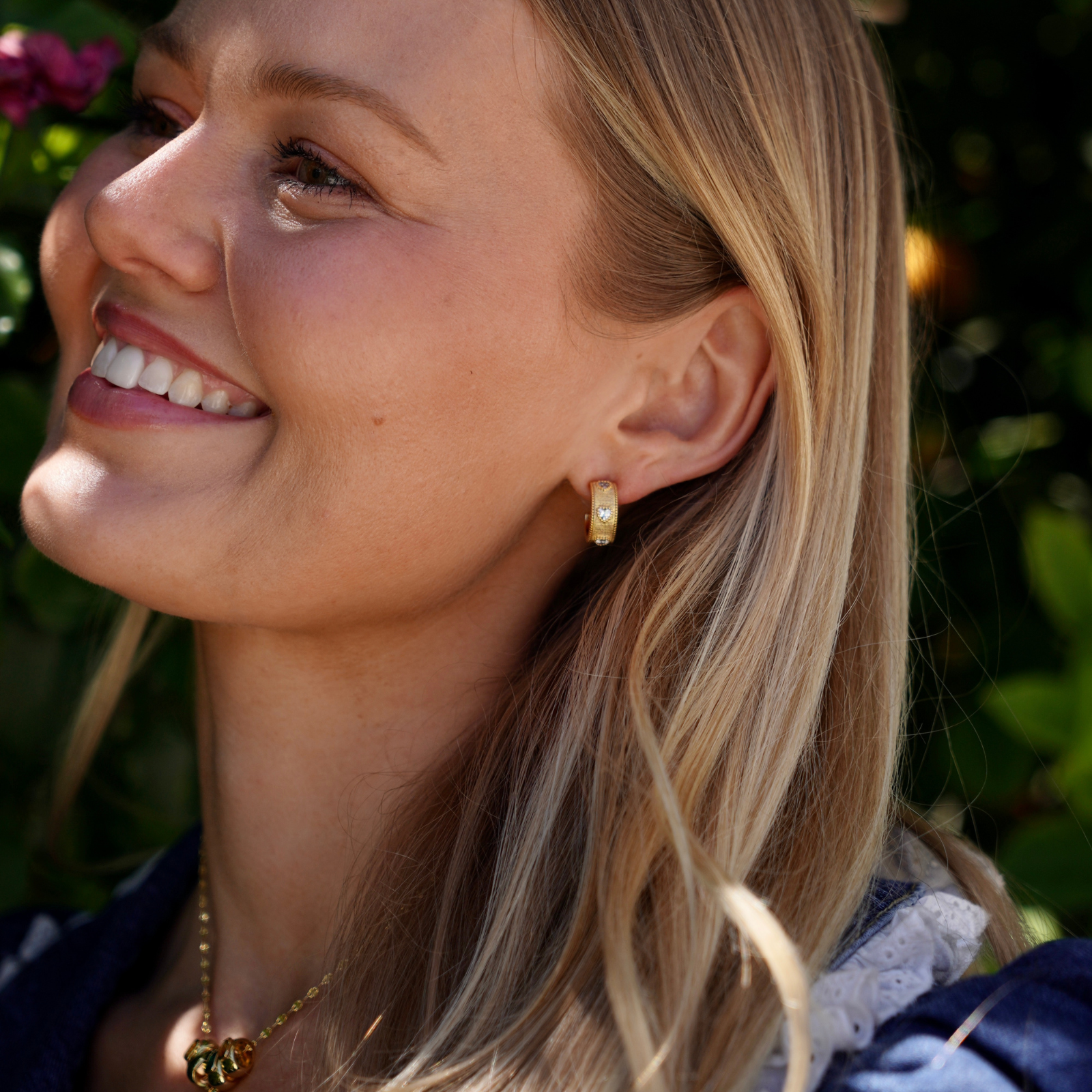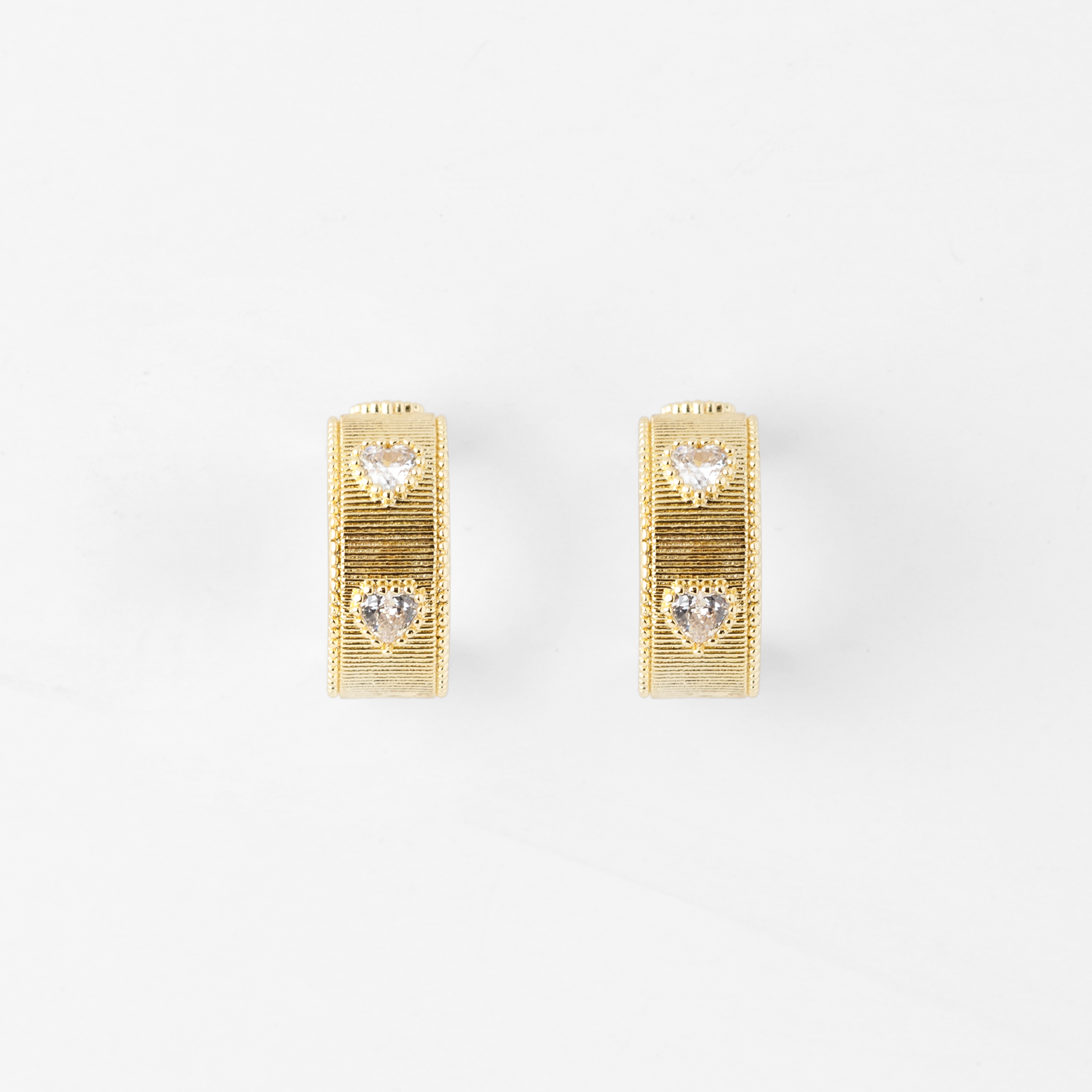 A classic silhouette, with a glow that feels like you. Our Radiant Heart Hoops are designed to bring a soft, luminous touch to your everyday style. Featuring delicate heart accents with subtle texture and sparkle, these hoops catch the light beautifully—adding warmth, shine, and just the right amount of statement. Available in both gold and silver, they’re made to match your mood, your layers, and your story. Whether you’re dressing up or keeping it effortless, these hoops are the kind of piece you’ll reach for again and again.