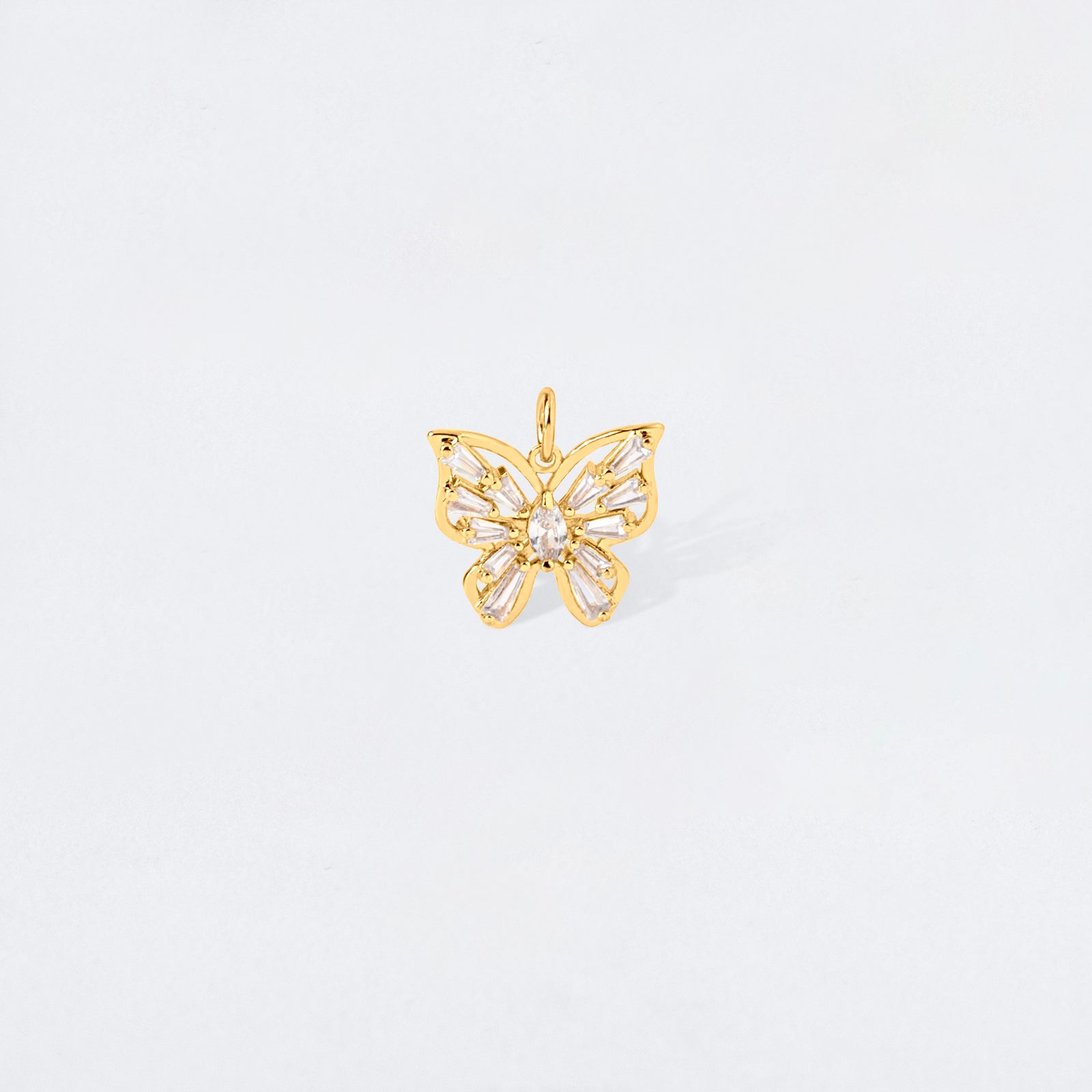 Sleek and sophisticated, the Baguette Cut Out Crystal Butterfly Charm Pendant shines with timeless beauty.