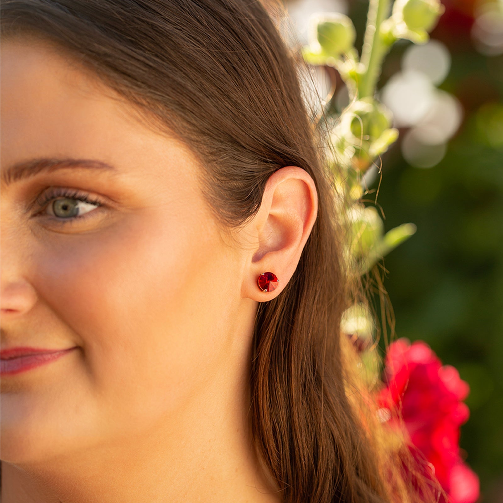 Add a pop of color to your wardrobe with our stunning Silver Stud Earrings with Scarlet Crystals! These stylish earrings (similar in size to our mini claras) feature sparkling Scarlet crystals set in a classic silver stud design, making them the perfect accessory for any outfit. Whether you're dressing up for a night out or adding some flair to your everyday look, these earrings are sure to make you feel beautiful and confident. P.S. They pair perfectly with our Large Silver Living LocketĀ® with Sweet Strawberry Crystals!