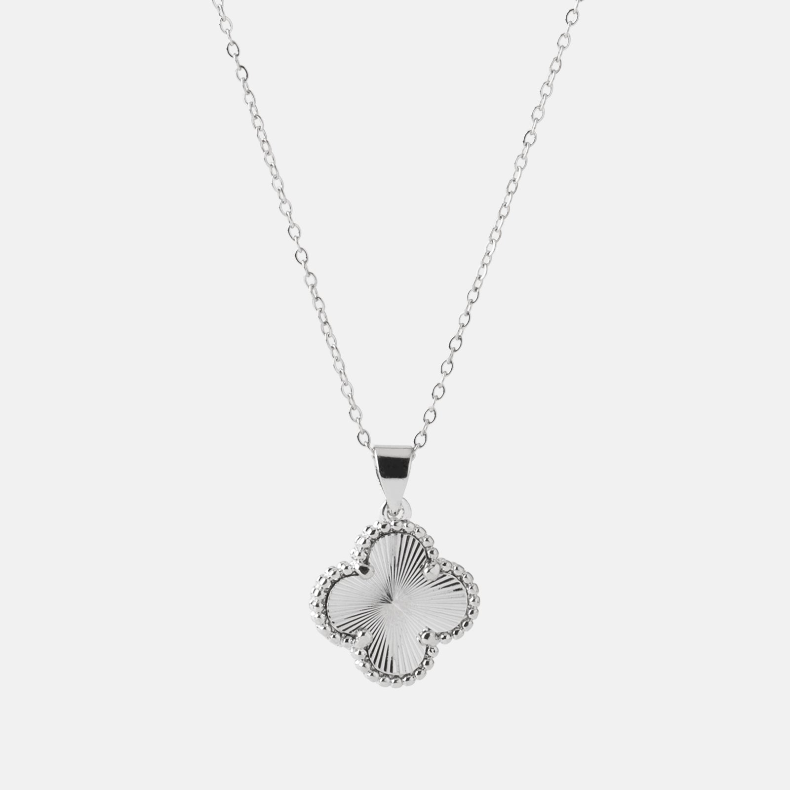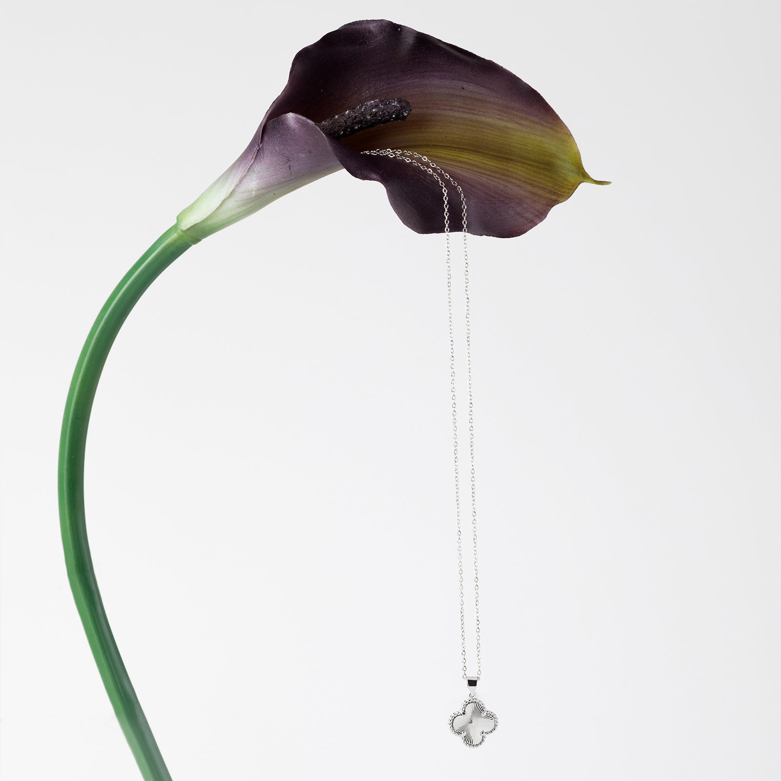 Our Grace Clover Pendant captures the quiet magic of the four-leaf clover — a timeless emblem of hope, faith, love, and luck. Designed with a radiant, dimensional silhouette, each polished petal reflects light with every movement, creating a subtle shimmer that feels both effortless and refined. Whether you wear it as a reminder of the blessings you carry or the dreams still unfolding, this piece is made to move with your story.