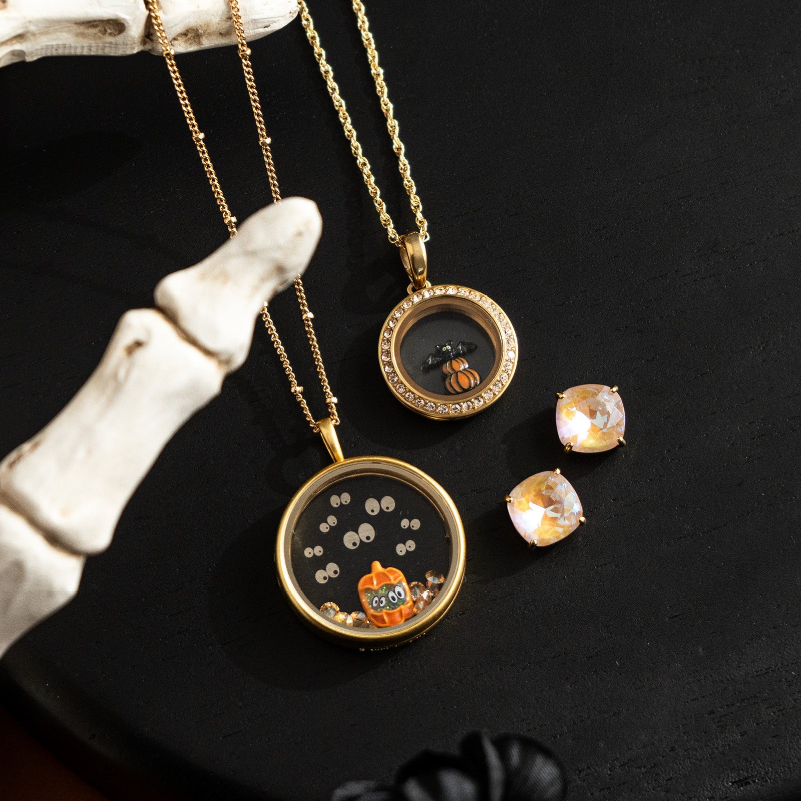 Take your Halloween charm collection to the next level with our Bat on Pumpkin Stack Charm! This design features a bat perched atop a stack of pumpkins, embodying the playful spirit of the season. Add a dash of spooky fun to your Living Locket® and showcase your love for all things Halloween.