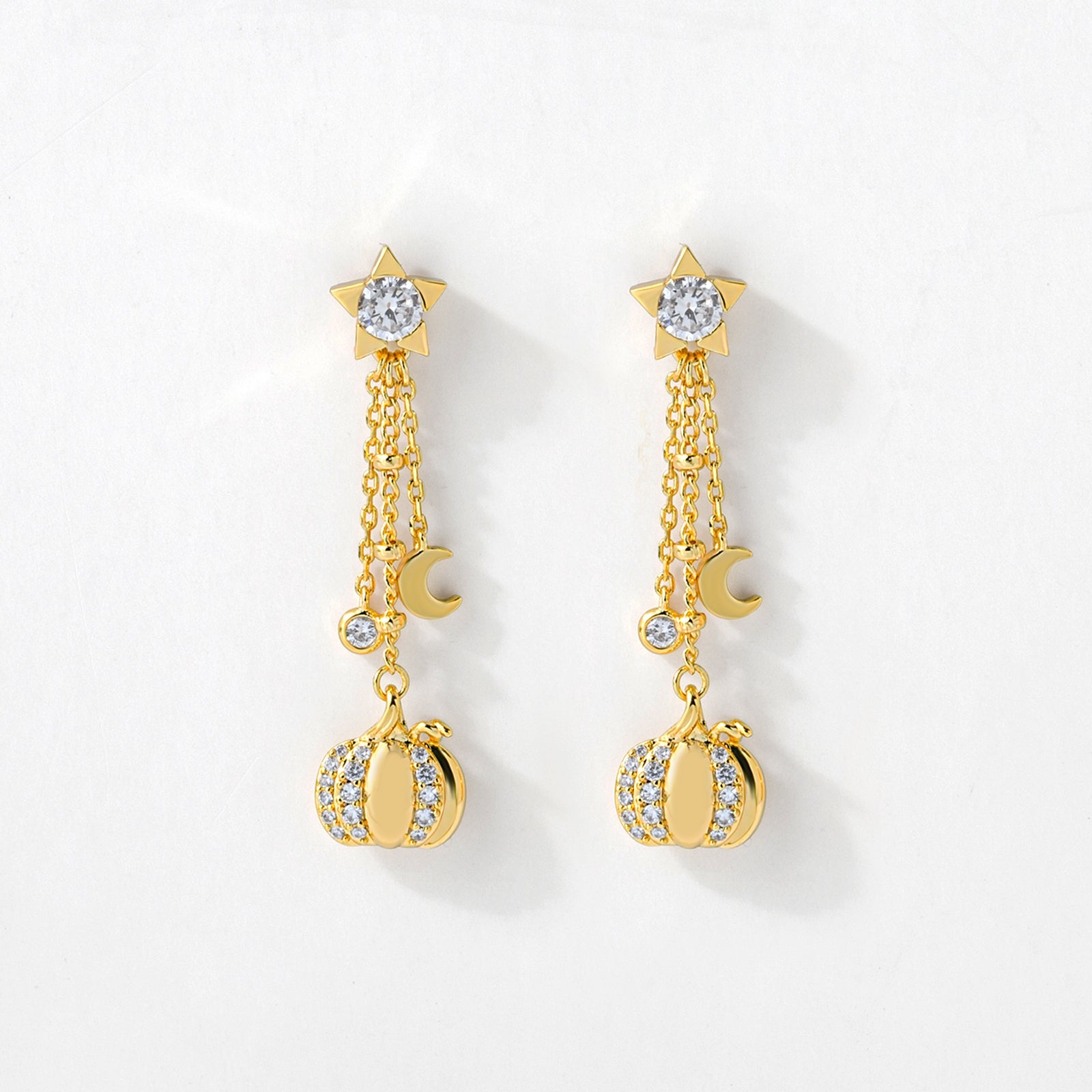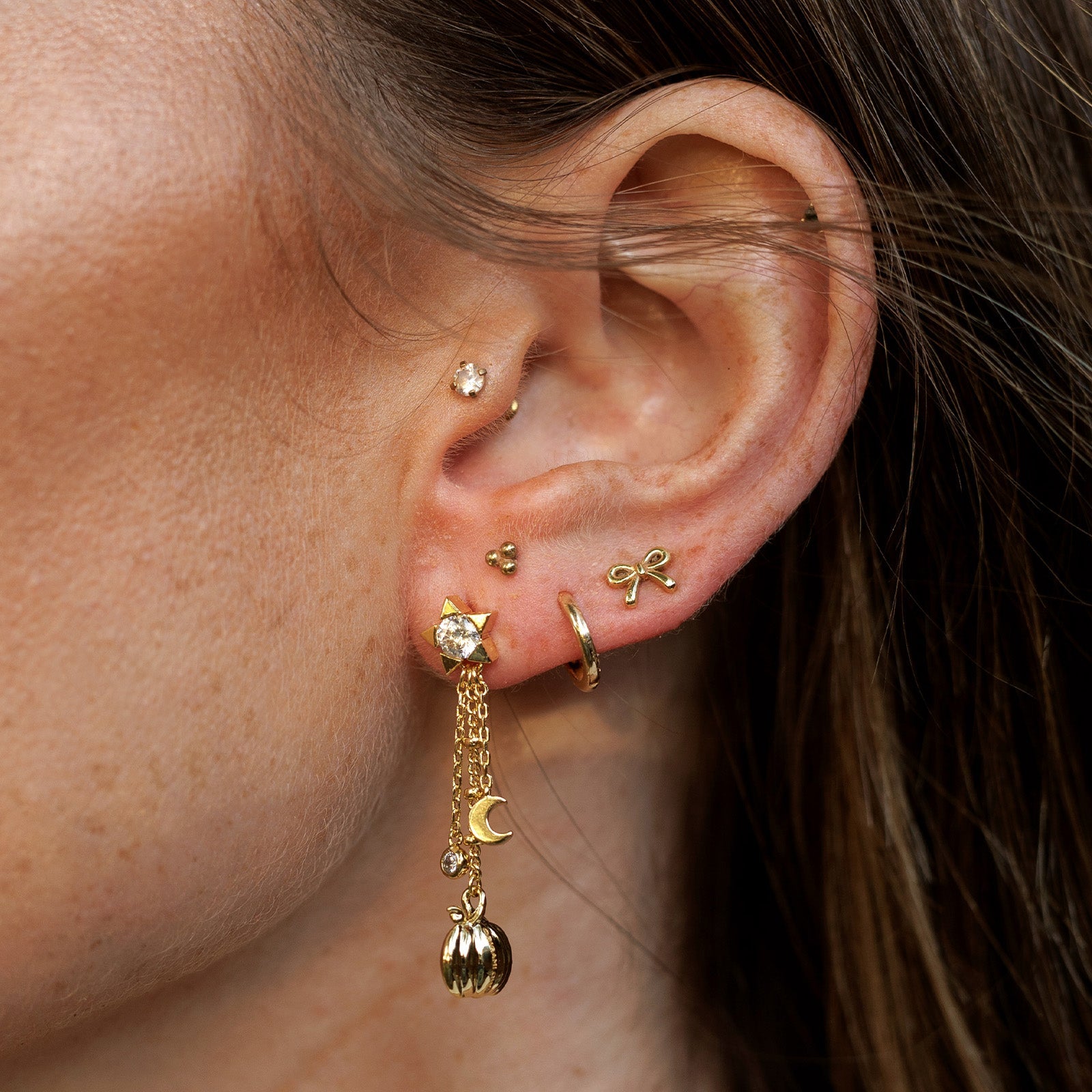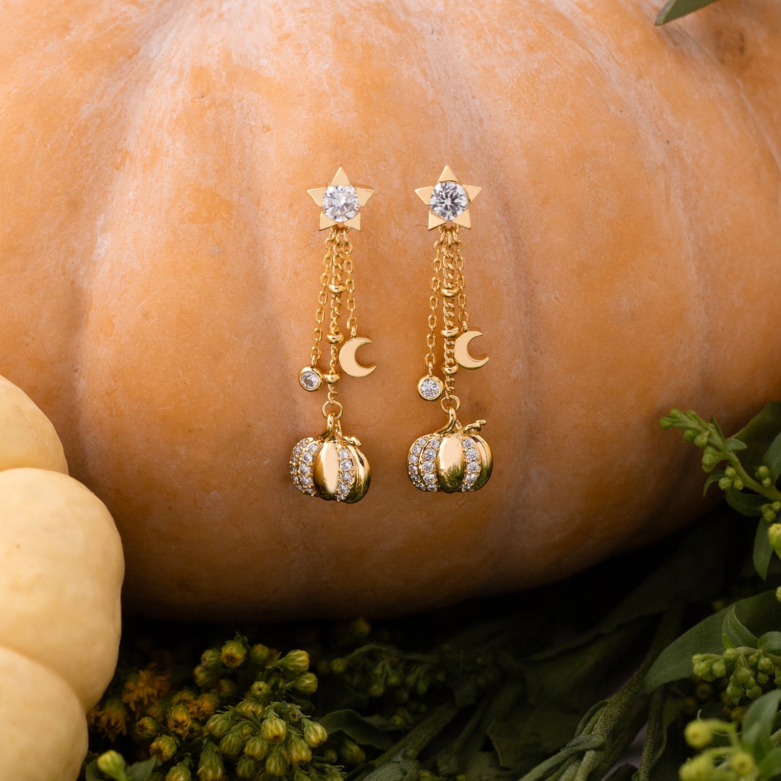 Our Pumpkin Star & Moon Drop Earrings are a dreamy addition to your Halloween style. These gold earrings are lightweight, playful, and shimmer with pumpkins, stars, and moons. Whether you’re dressed up for a party or just enjoying the season, they’re perfect for adding some festive sparkle and celestial vibes to any Halloween look. Shine bright all season with these stellar earrings!
