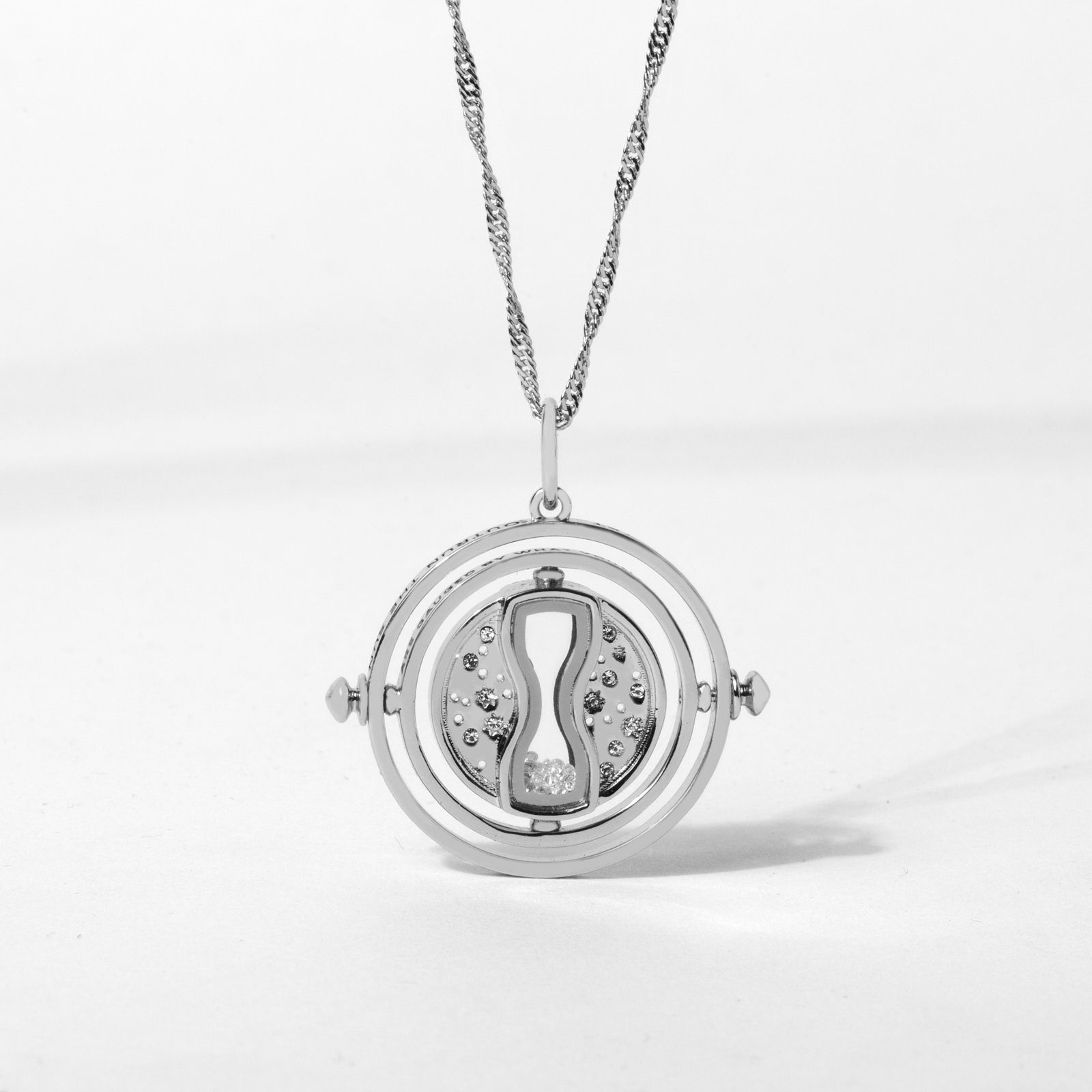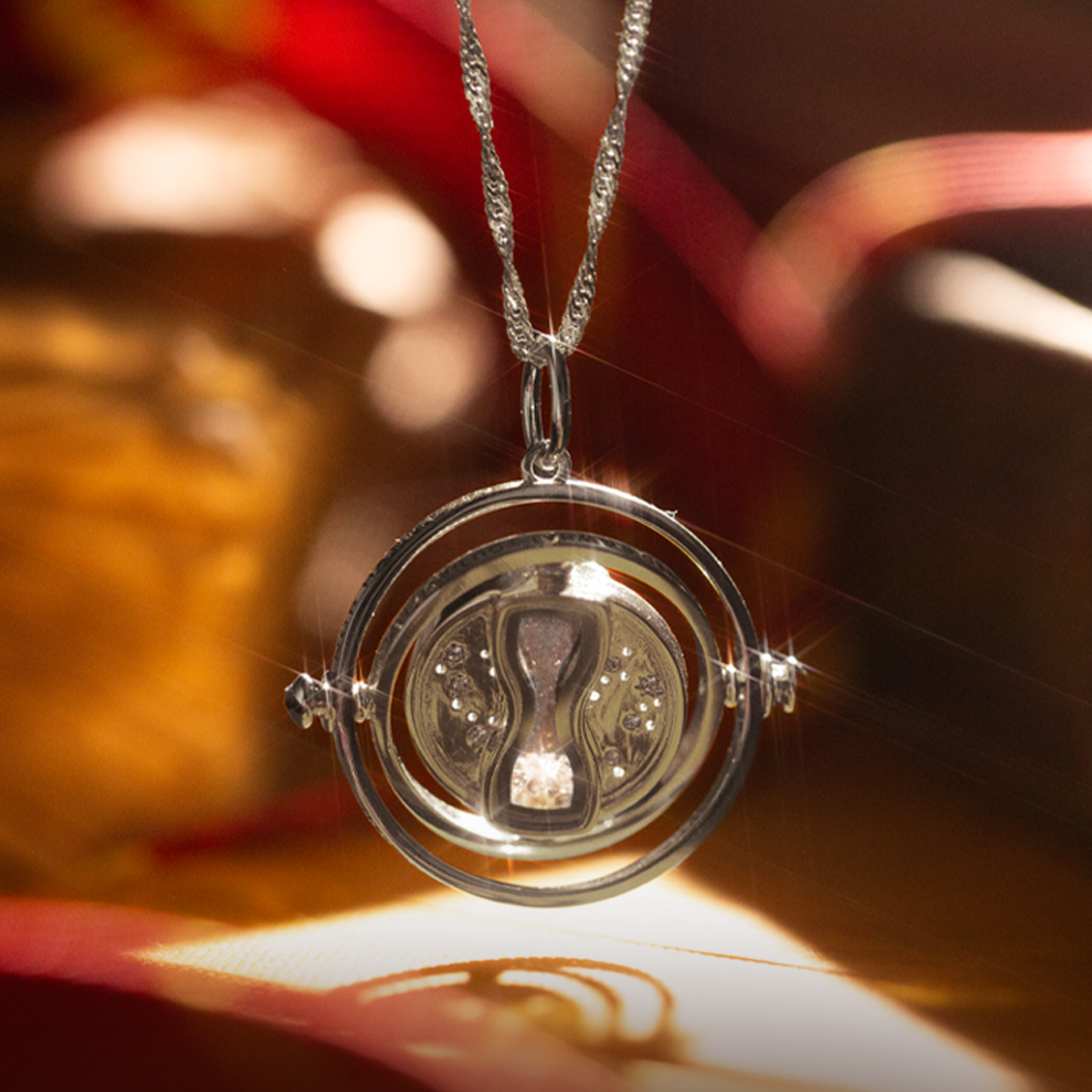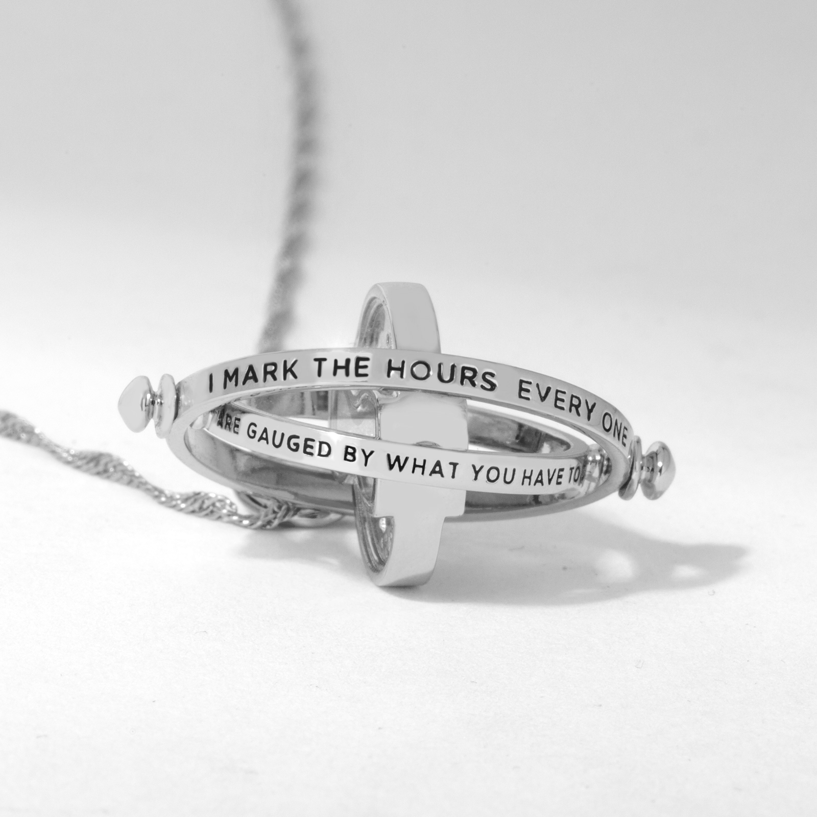 Get ready to turn back time and unleash the magic with our exquisite Harry Potter Time Turner Spinning Pendant Necklace! This enchanting necklace features a meticulously crafted golden time turner pendant that spins, taking you on a whimsical journey through the wizarding world. This necklace is delicately inscribed with “I mark the hours, every one, Nor have I yet outrun the Sun. My use and value, unto you, Are gauged by what you have to do” and is attached to a 22-24” Dainty Faceted Rope Chain.