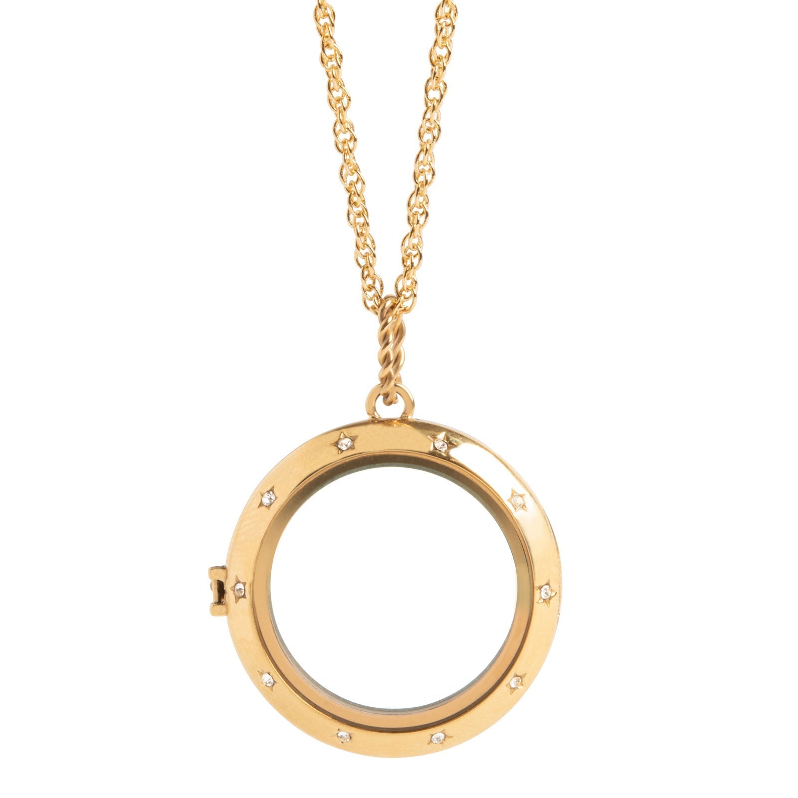This 2-in-1 Reversible Wonder Woman™ Living Locket® will hold only the truth inside! One side of this gold locket necklace features a delicate crystal star pattern, and the other side features an iconic rope design. Simply turn it over for a whole new look. Add 4-6 Charms that will tell the compelling story of how strong, brave and fierce you are.