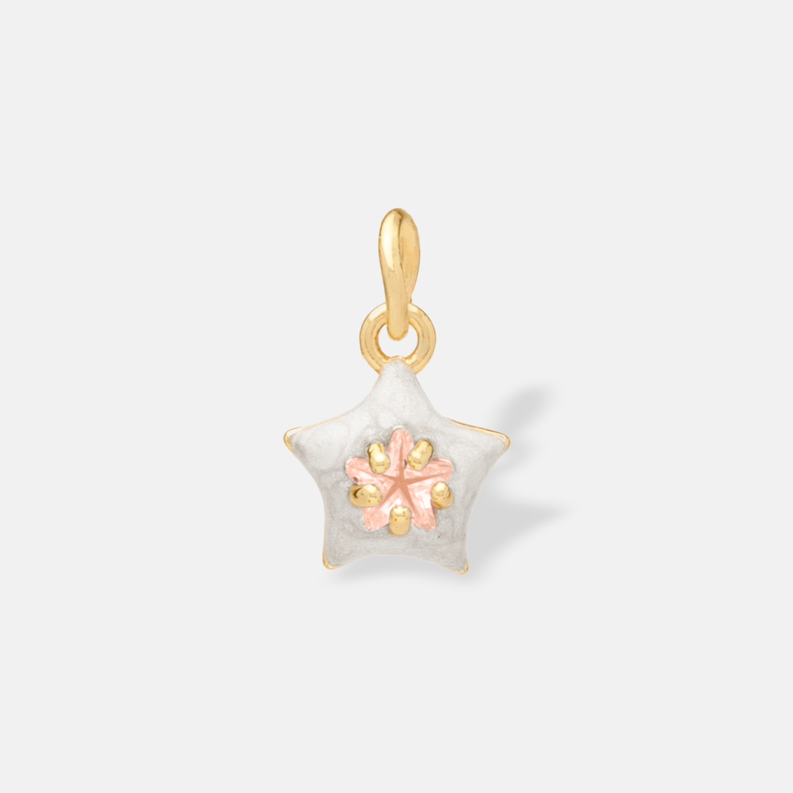 Small, but full of meaning. This mini star charm features a soft pink marbled finish with a delicate crystal at its center—bringing just the right touch of light and color to your stack. Subtle and sweet, it’s the kind of piece that feels personal, like a quiet wish you carry with you. Add it as a reminder to keep dreaming, keep hoping, and trust that the little things are leading you somewhere beautiful.