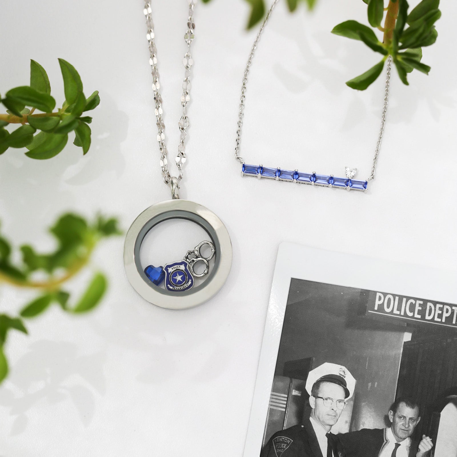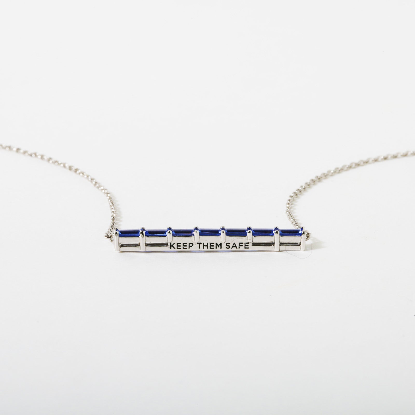 I back the blue! Honor and support the brave men and women in blue with this Silver Thin Blue Line Bar Necklace! Attached to a 16-19” chain, this necklace features blue CZ crystals and is delicately inscribed with “Keep them safe” on the side. This dainty blue thin line necklace makes a wonderful gift for a police officer in your life.