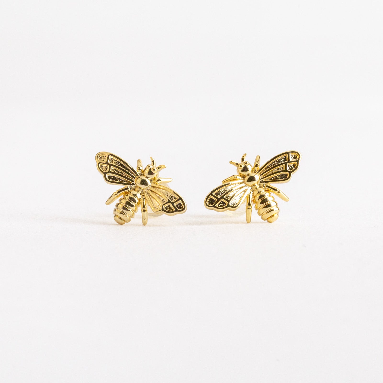 Sweeten your style with our Honeydrop Bee Gold Stud Earrings. These gold bumble bee studs are adorable and perfect for everyday wear. Symbolizing hard work, joy, and connection, these bee stud earrings add meaning to your look! Pair them with a bee charm pendant or floral pieces for a look that's all about the buzz.