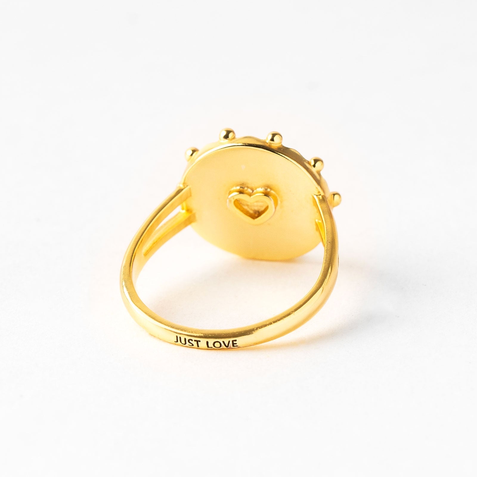You can celebrate love in all its forms with the 'Just Love' Gold Heart Ring. For those who have faced trials and emerged with their hearts intact this ring is designed for you. Inscribed with the message "Just Love" on the band, this imprint ring will leave a small heart on your finger after wearing it serving as a reminder to keep your heart open through failure, loneliness, and your darkest hours.
