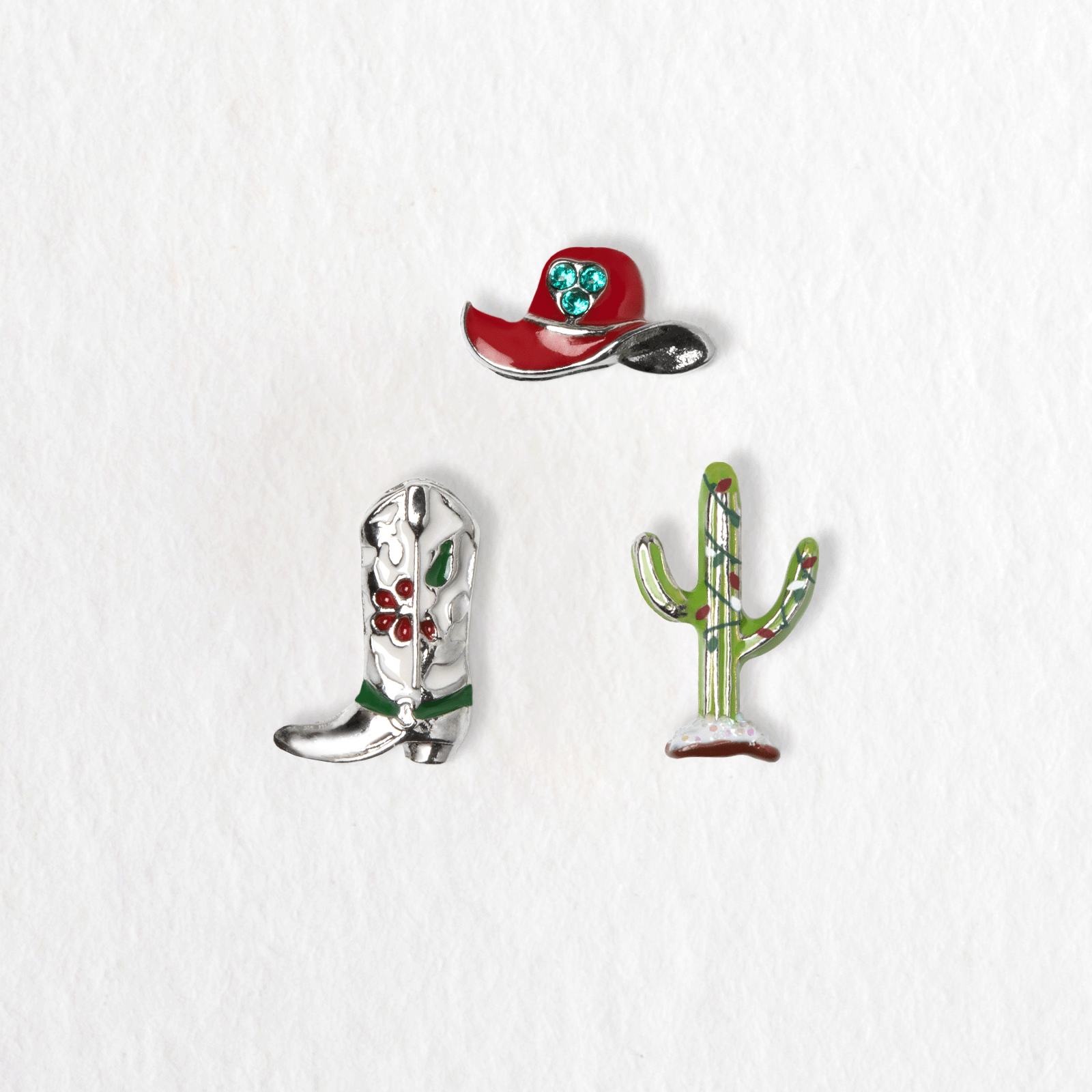 Saddle up for the season with our Cowgirl Christmas Charm Trio. Featuring a festive cowboy hat, a glittering boot, and a tiny cactus, this adorable charm set brings southern charm to your holiday locket. Add a touch of country sparkle to your story, or gift it to someone who loves wide-open skies and winter wonder. Perfect for holiday parties, rodeo fans, or a little hometown flair.