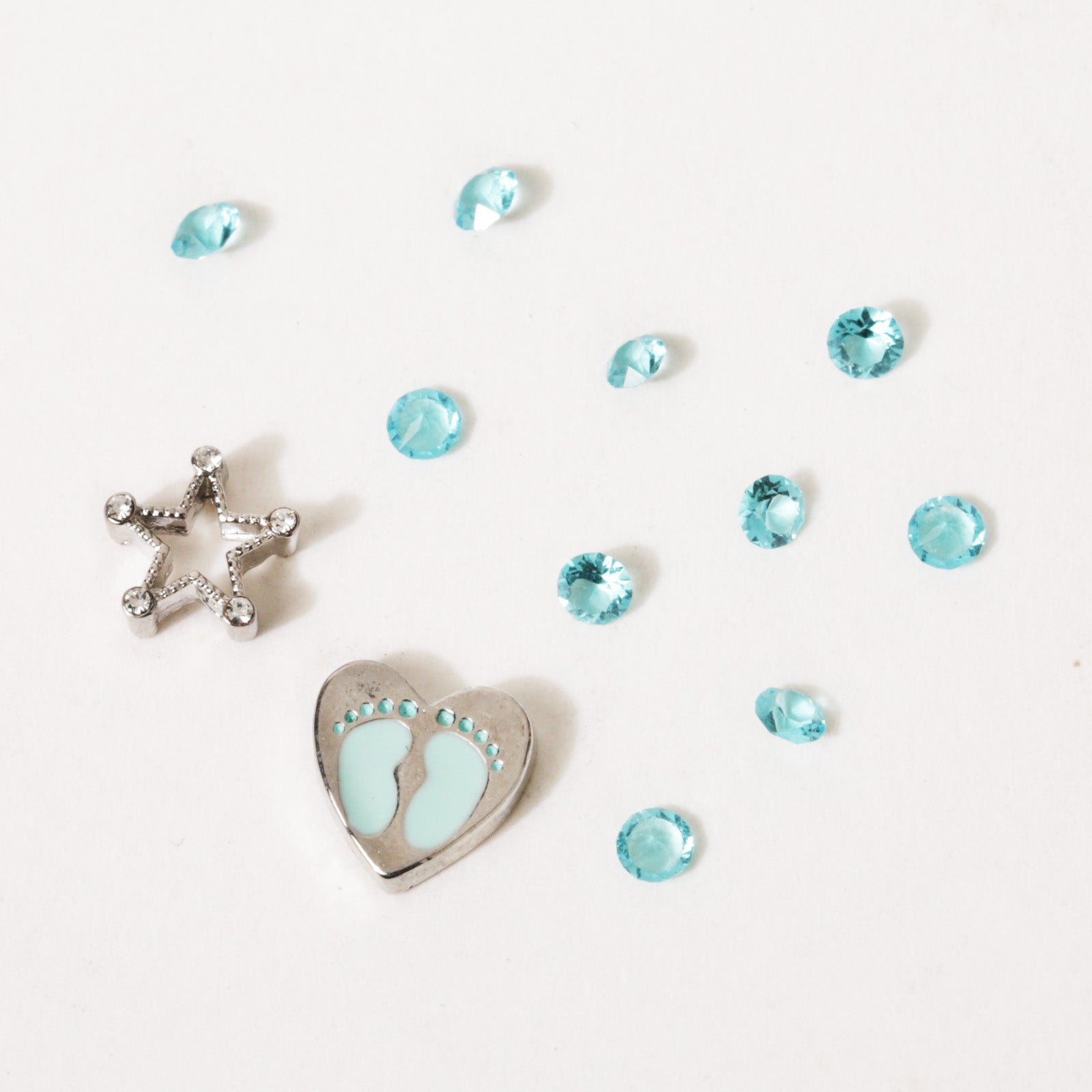 Celebrate the arrival of your baby boy with our It's a Boy Charm Set! Featuring a Heart Baby Boy Feet Charm, a Silver Star Charm, and Light Turquoise Stardust Crystals, this adorable charm set is sure to be a loving and charming addition to your Living Locket® jewelry.