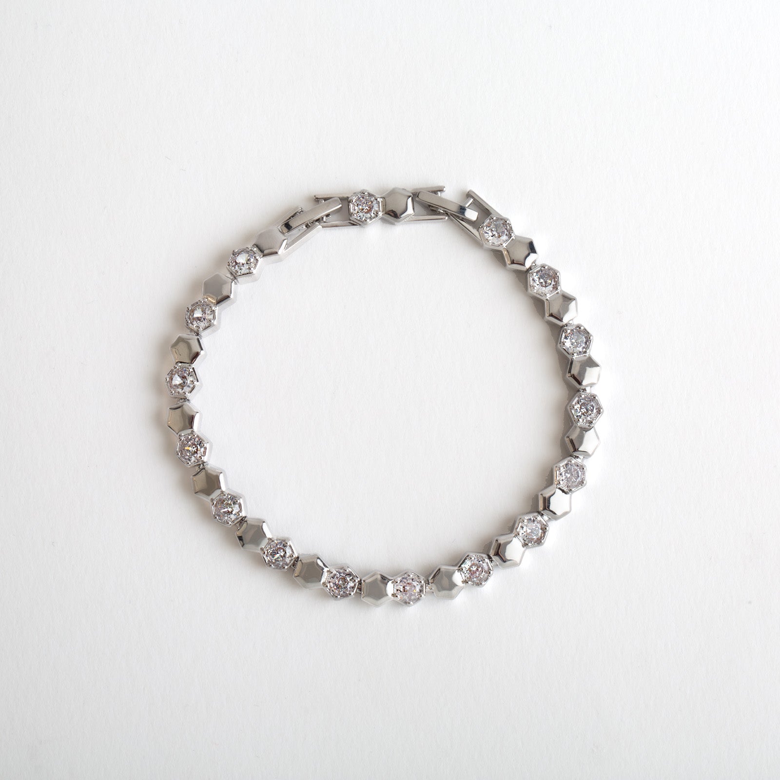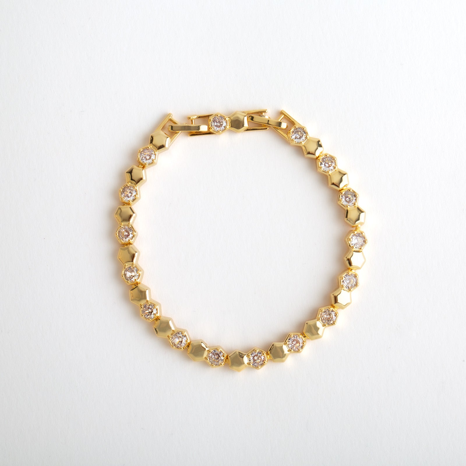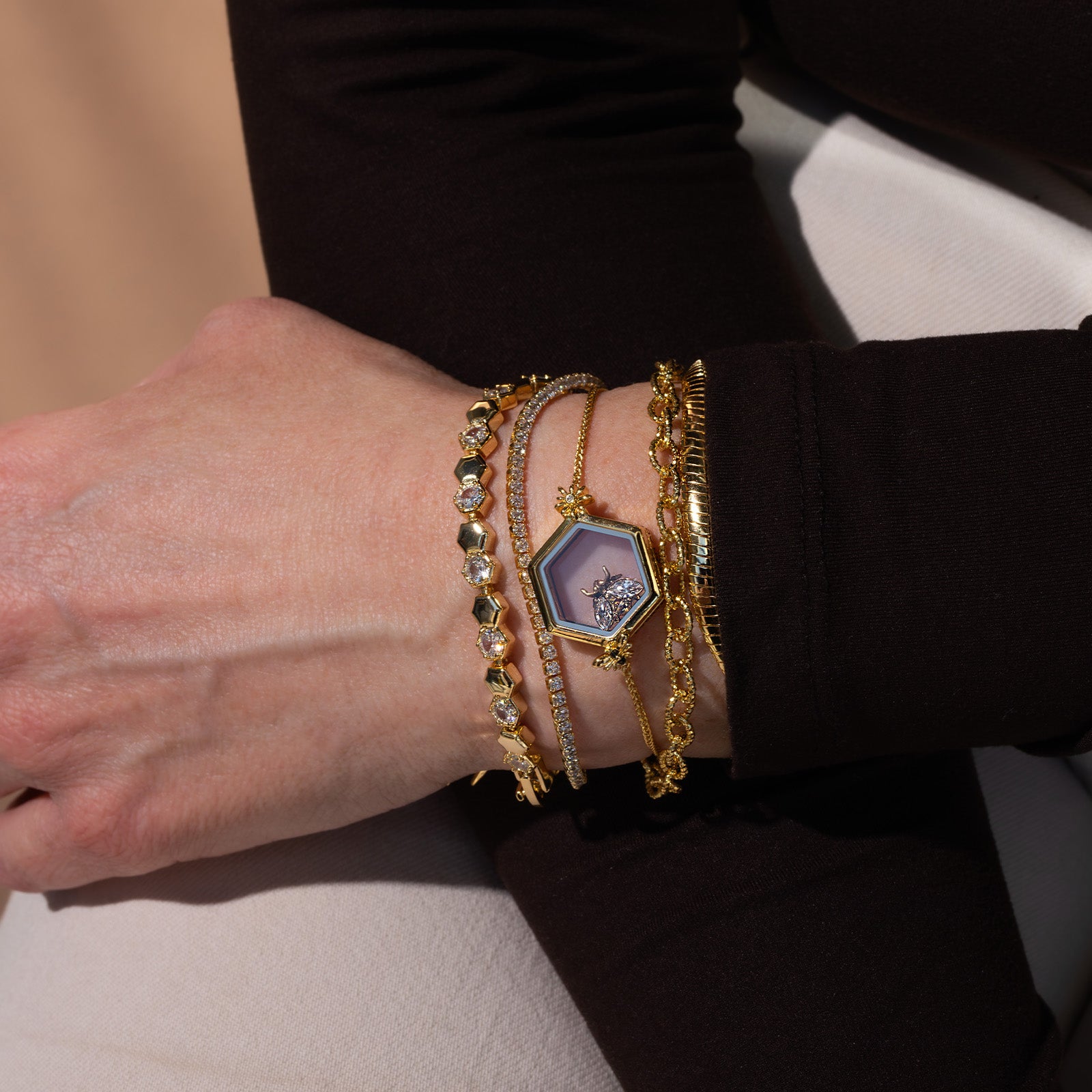 The Honeycomb Luxe Tennis Bracelet features rows of honeycomb-inspired sparkle and links. Let this beautiful tennis bracelet add a luxe touch to your fall layering stack, or for gifting moments that shine bright.
