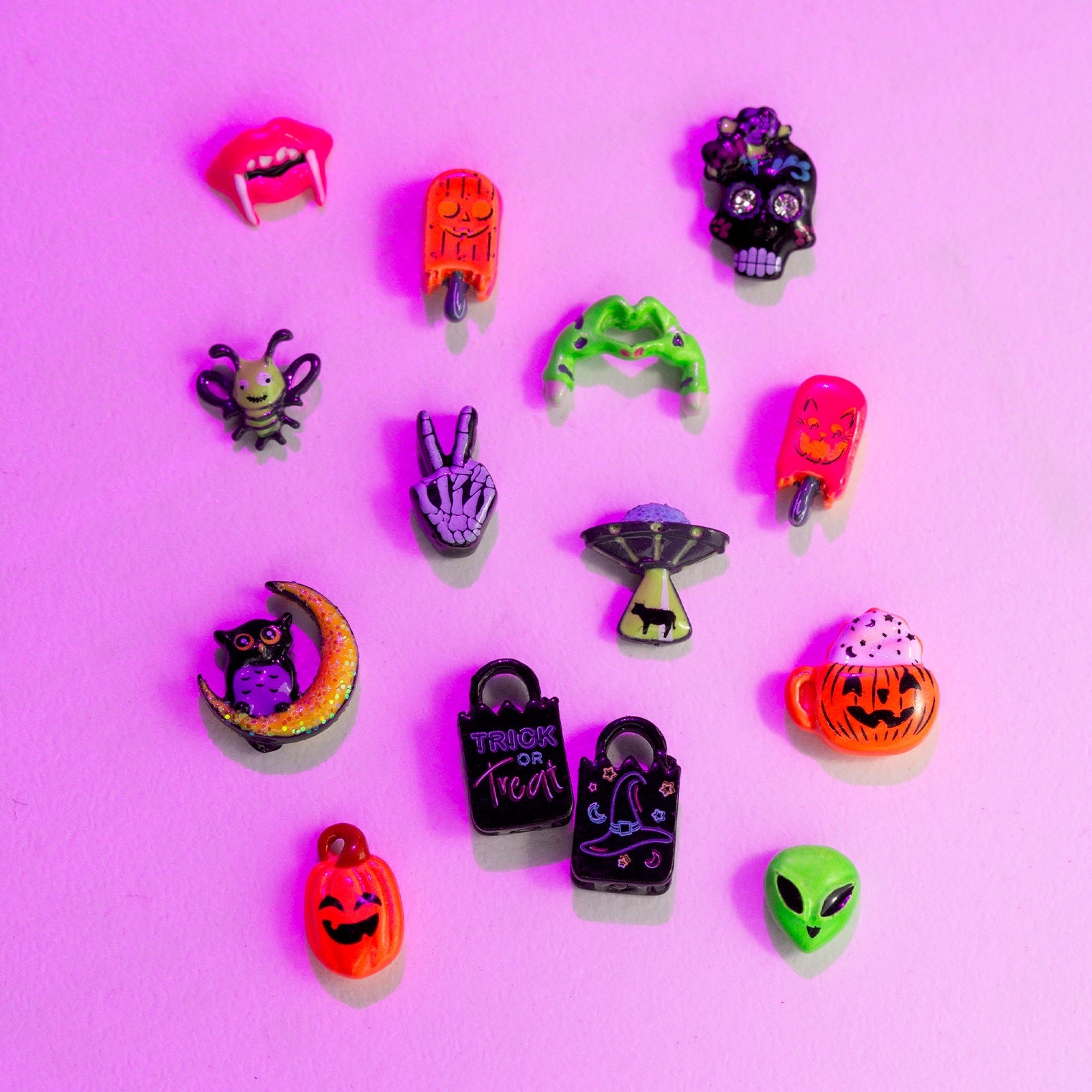 Our Neon Pumpkin Popsicle Charm brings a cool twist to Halloween! Combining the spooky jack-o-lantern with a popsicle, this quirky charm is a fun addition to any fall Living Locket® look. Perfect for those who like their Halloween with a side of sweet, pair it with your favorite spooky season charms for a bright, playful vibe!