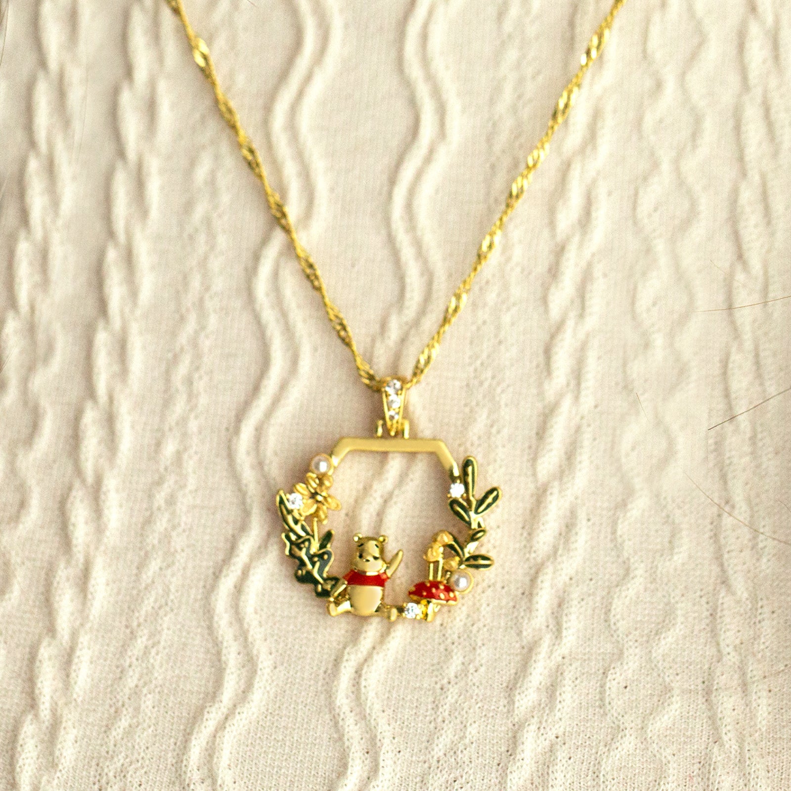 When you need a little reminder that you’re braver than you believe, stronger than you seem and smarter than you think, just put on this Disney Gold Winnie the Pooh Pendant Necklace! This necklace comes on a 16-19” Gold Dainty Faceted Rope Chain and features crystals, pearls, a mushroom and your favorite fluffy, honey-loving bear.