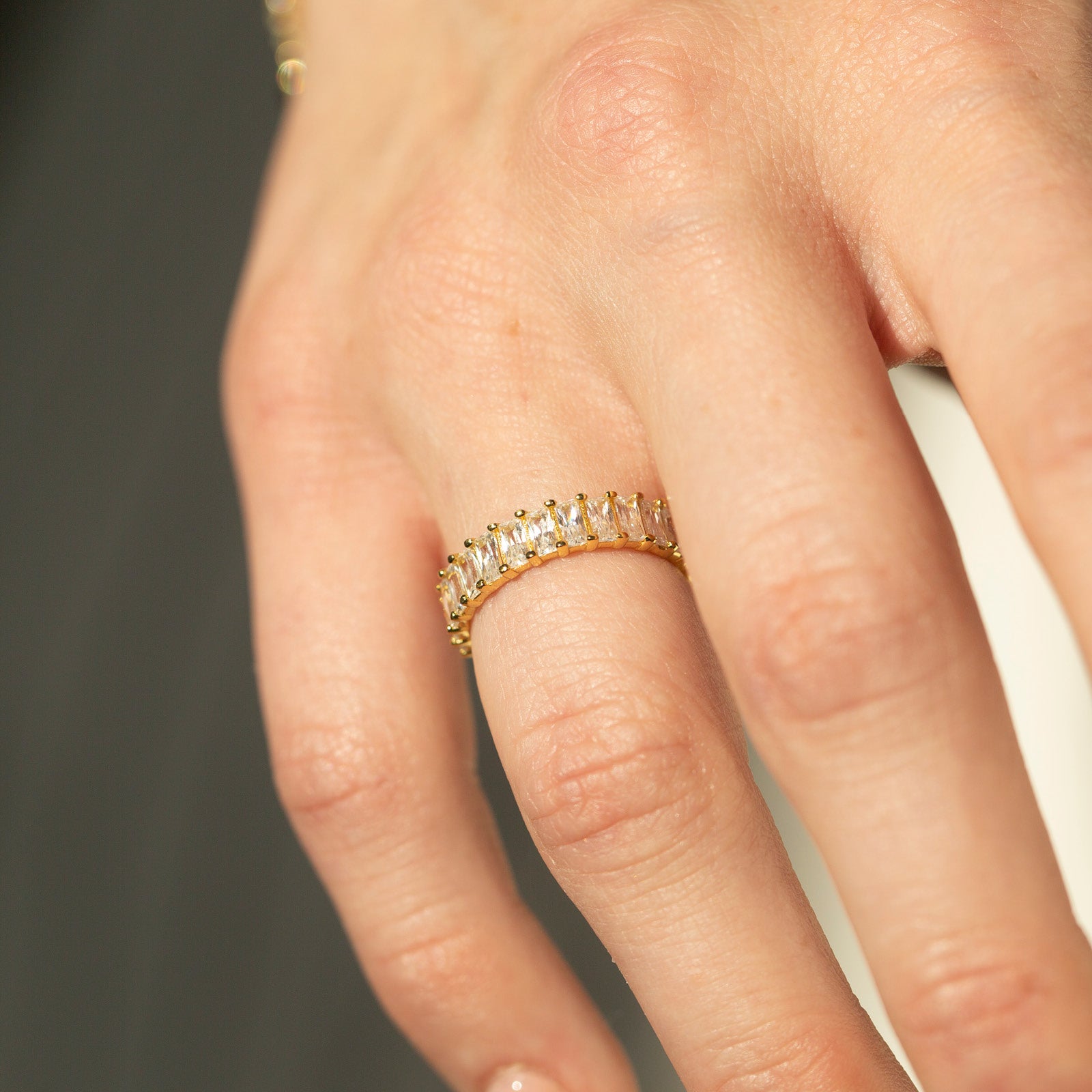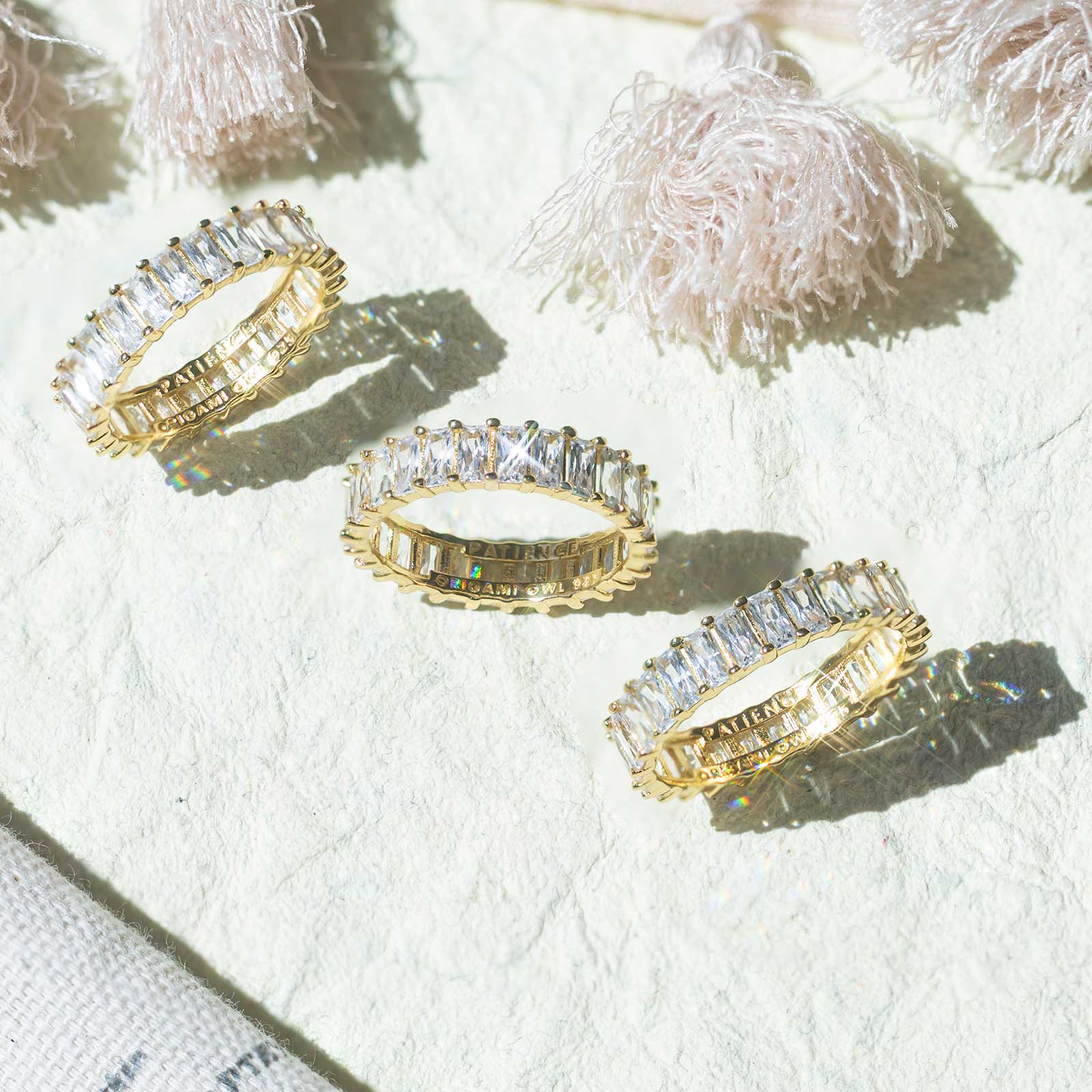 When you need a little reminder to slow down and enjoy the journey, put on this beautiful, statement-making gold ring! The empowering word “Patience†is delicately inscribed on the inside and vertically placed Baguette Crystals are wrapped all the way around this spectacular ring adding maximum sparkle to every look!